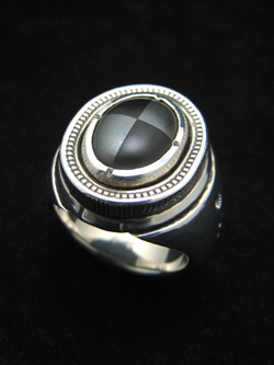 オニキスとヘマタイトを交互に合わせ、 マット(つや消し)に仕上げた石を使用したリングです。