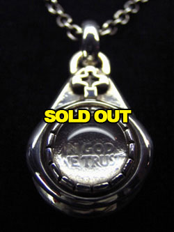 水晶の奥には、アンティークUS銀貨の一部分を入れており『IN GOD WE TRUST』と言う文字が透けて見えます。