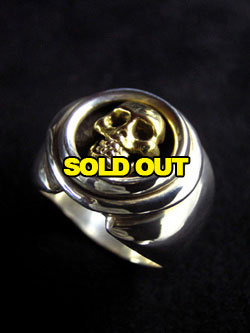 中央にある18金のスカルを土台よりも少し浮かして付けました。 シンプルで高級感のあるスカルリングです。